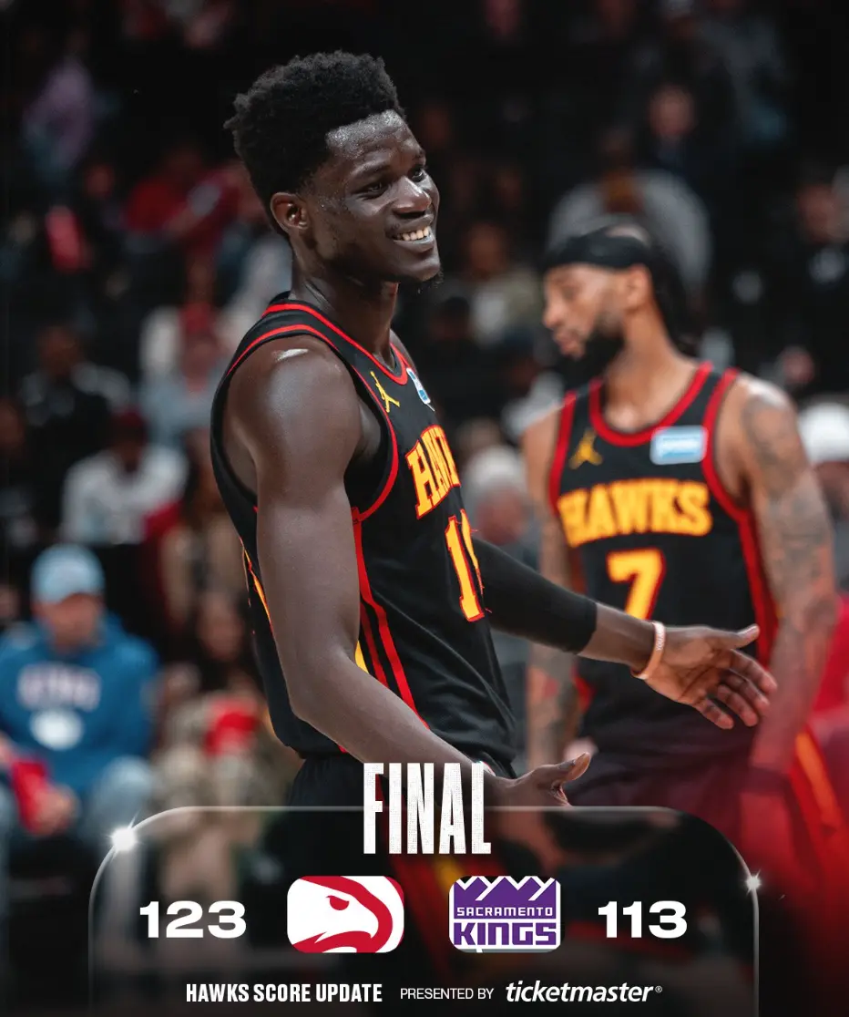 老鹰主场以123-113击败国王,常规赛战绩来到42胜33负,位居东部第六的季后赛安全区;至于落败的国王,本场比赛输球之后,常规赛战绩来到19胜56负,依旧是西部倒数第一。