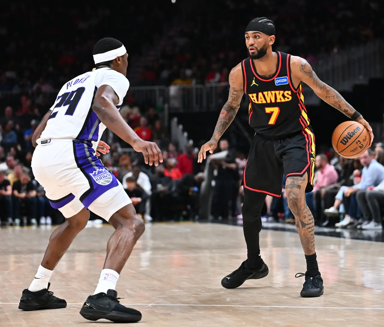 作为两支战力差距相差甚大的球队,本场比赛的走势反而颇有戏剧性,首节结束时国王打出3分领先,但从第二节开始时,比赛节奏就完全被老鹰掌控了。