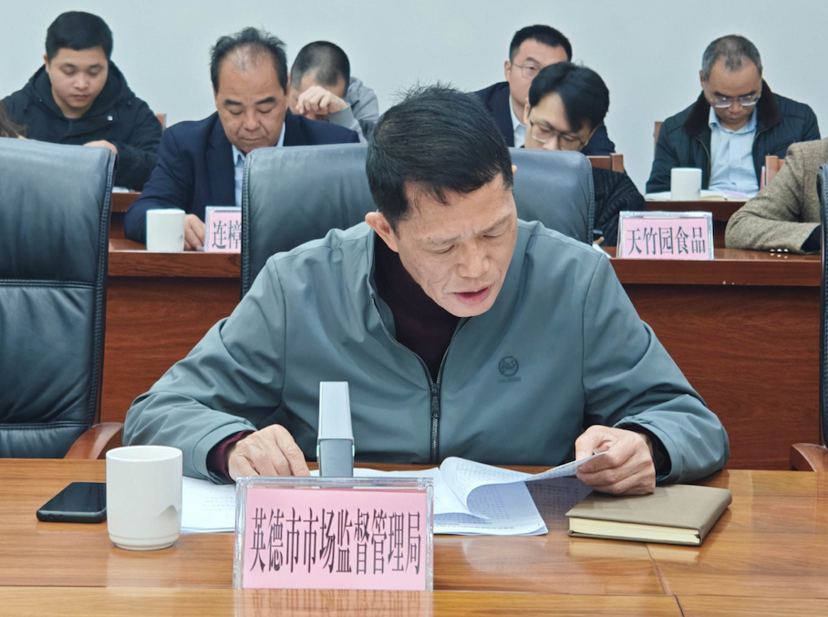 英德市市场监督管理局相关负责人汇报监管成果。截至12月,英德市现有麻竹笋及相关制品生产企业29家,合规麻竹笋加工小作坊26家。清远、英德两级抽检麻竹笋生产单位样品合格率100%。